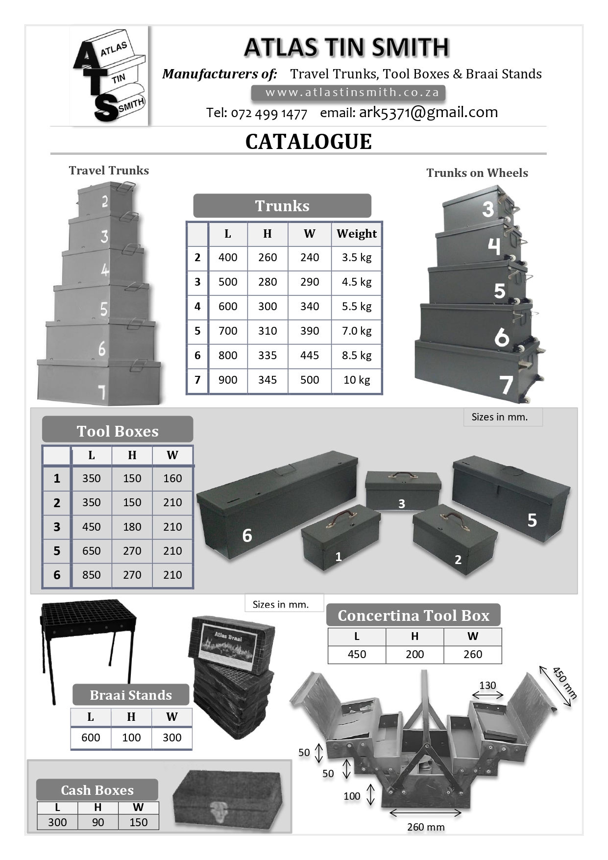 Contact us for Pricing072 499 1477 Trunks Trunks on wheels Tool Boxes Braai Stands 600 x 100 x 300 mmCollapsible Legs